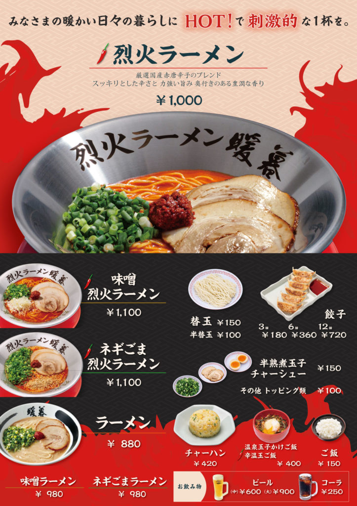 烈火ラーメン暖暮のメニュー